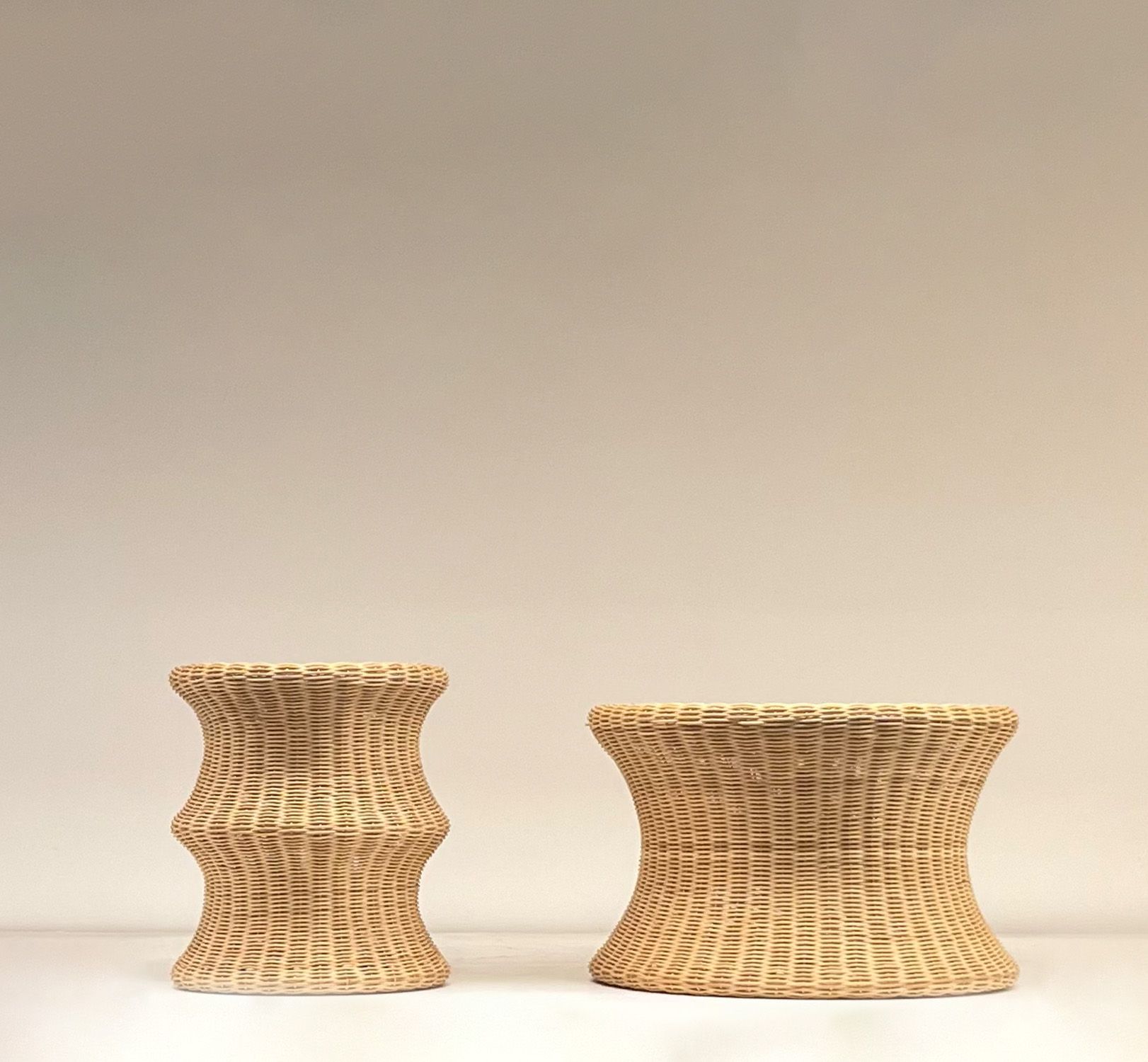 Juttu Stool & Large Mushroom Rattan Ottoman by Eerio Aarnio for Kartell, circa 1960s