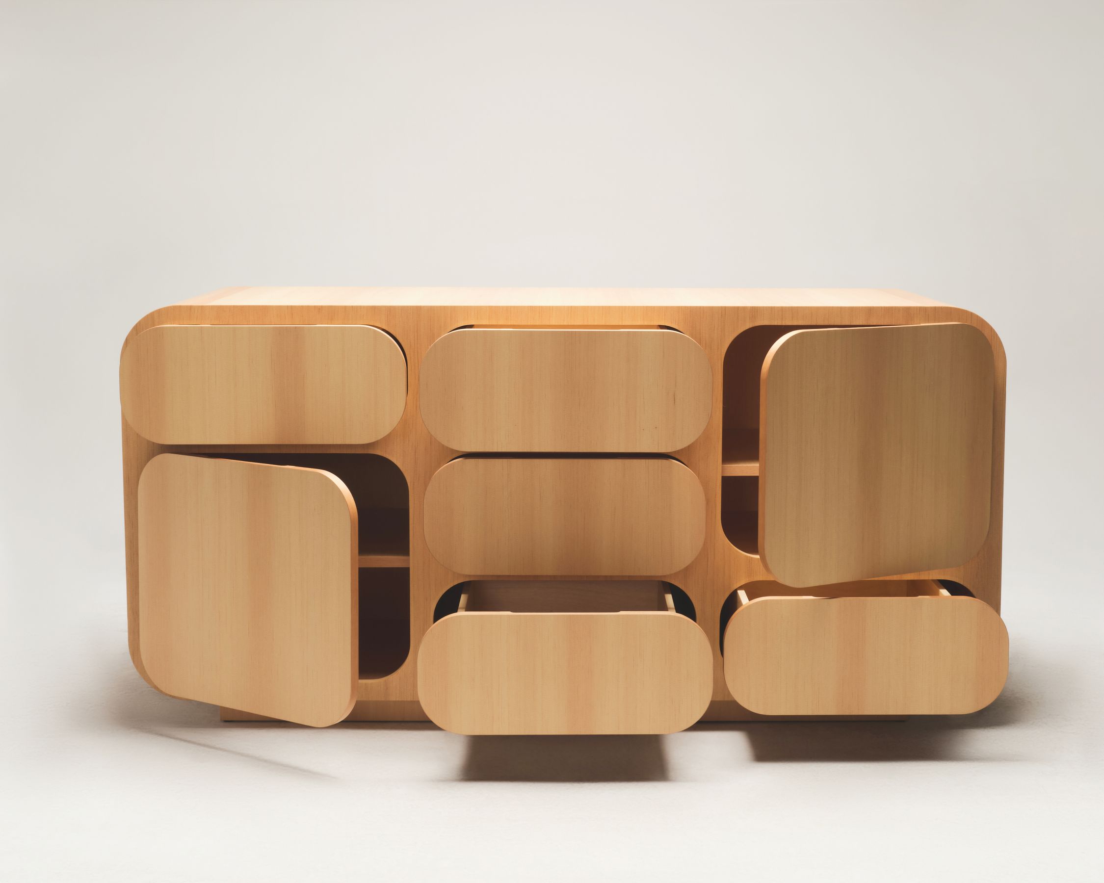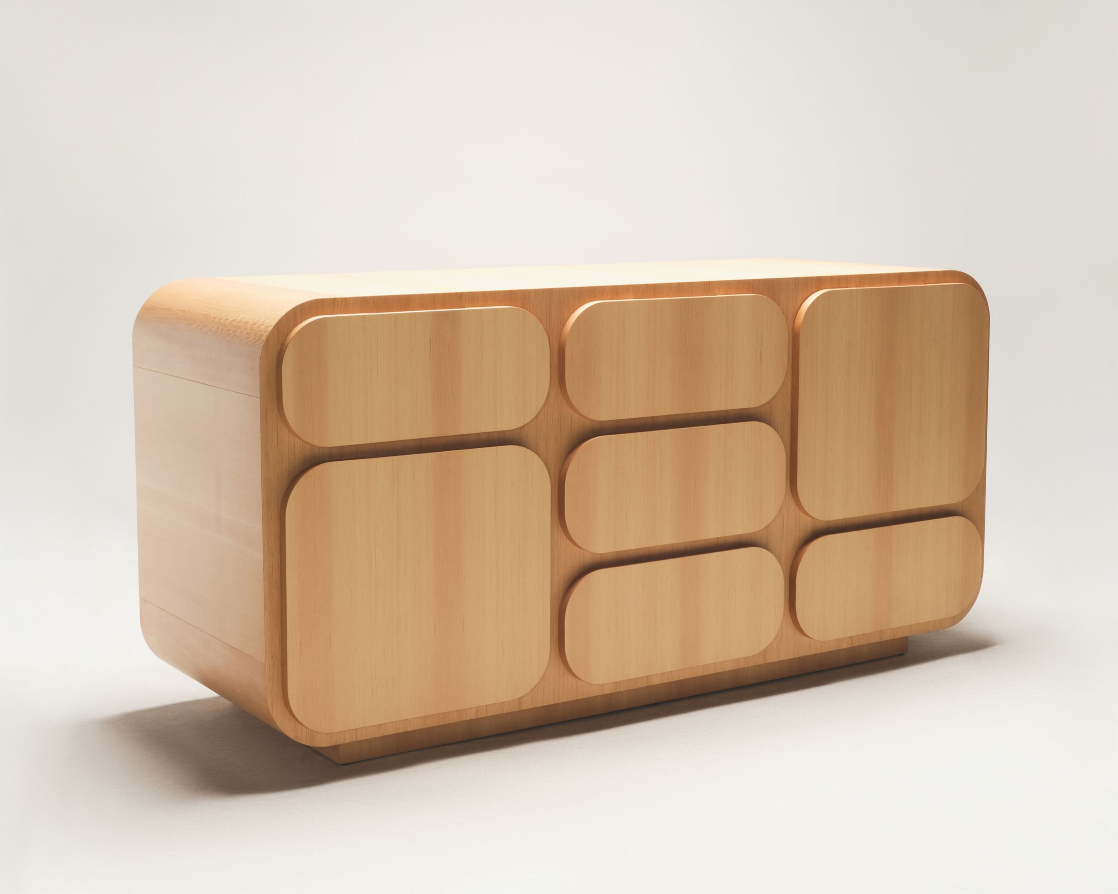 This credenza was inspired by the playful designs coming out of Europe in the 60’s. It’s rounded corners and warm tones make it an approachable fit for any space.